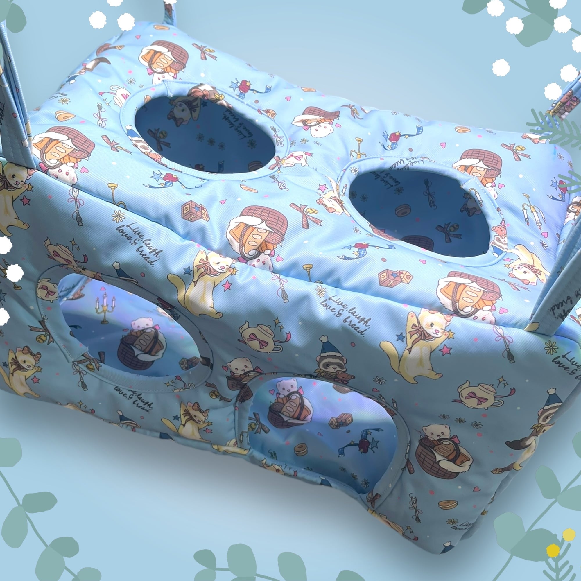 ※製作過程の都合上ハンモック内部の仕切り付近にマーキングの跡が残っていますが、洗濯していただくうちに消えていきます。使用には問題ありません。