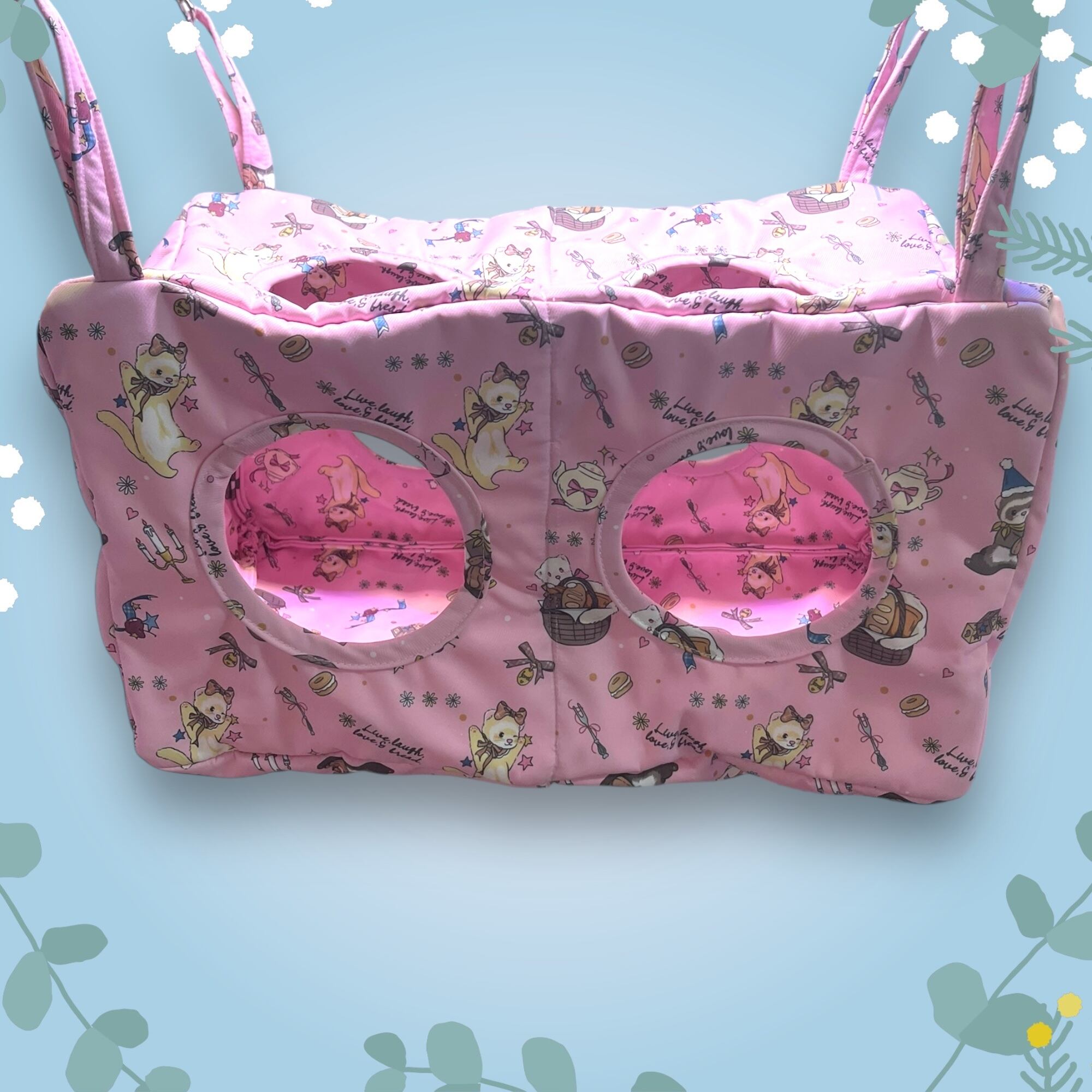 ハンモック内部は通り抜け可能な穴の空いた仕切りを設置し、フェレットにとって安心のできる居心地のいい休憩スペースとなっております!
