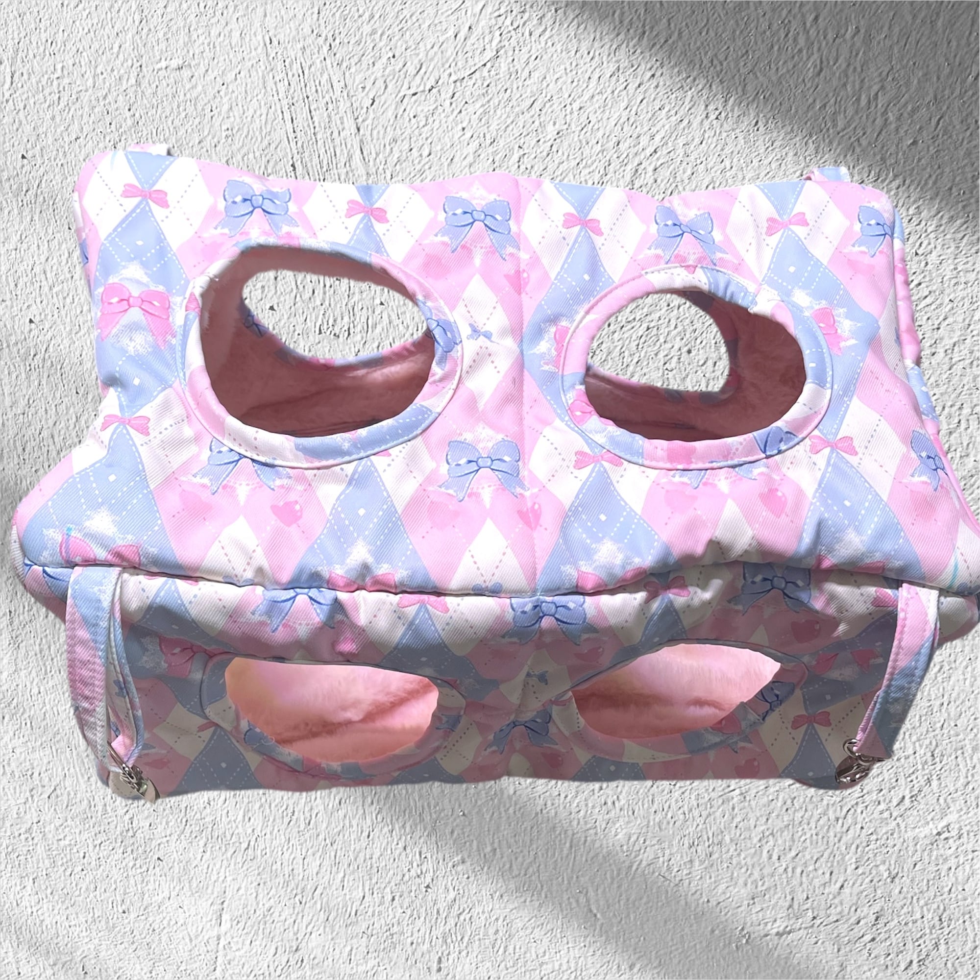 ハンモック内部は通り抜け可能な穴の空いた仕切りを設置し、フェレットにとって安心のできる居心地のいい休憩スペースとなっております!
