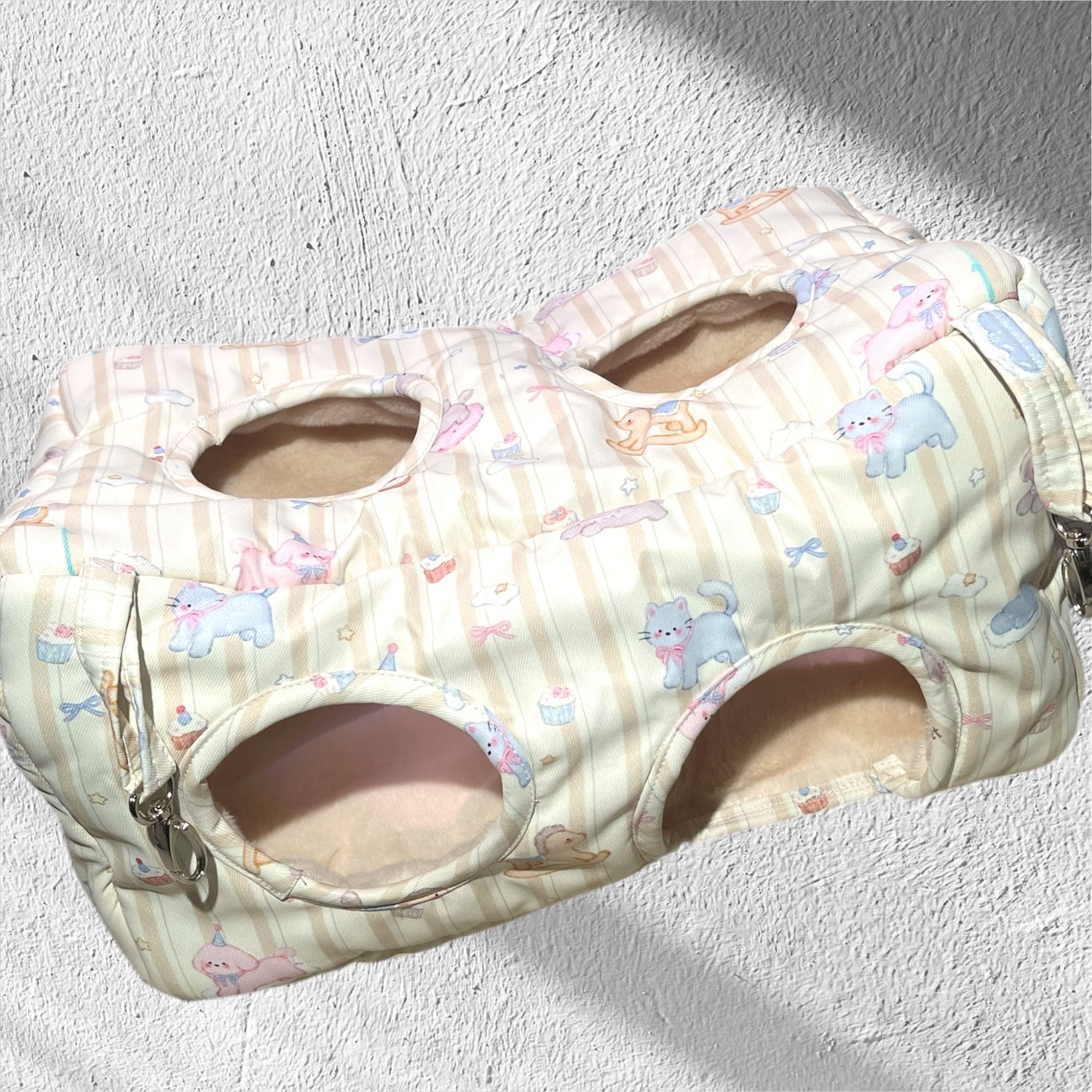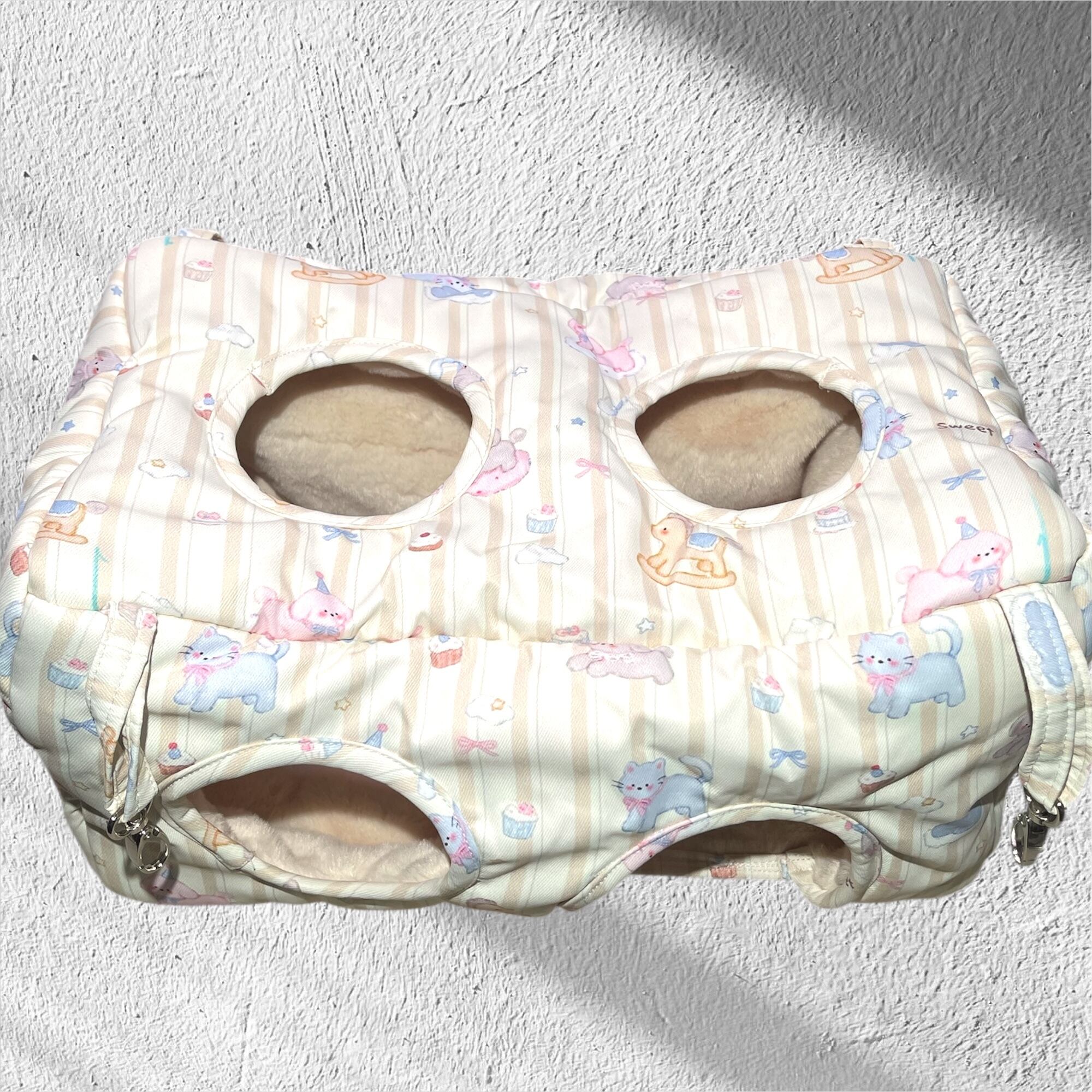 ※製作過程の都合上ハンモック内部の仕切り付近にマーキングの跡が残っていますが、洗濯していただくうちに消えていきます。使用には問題ありません。