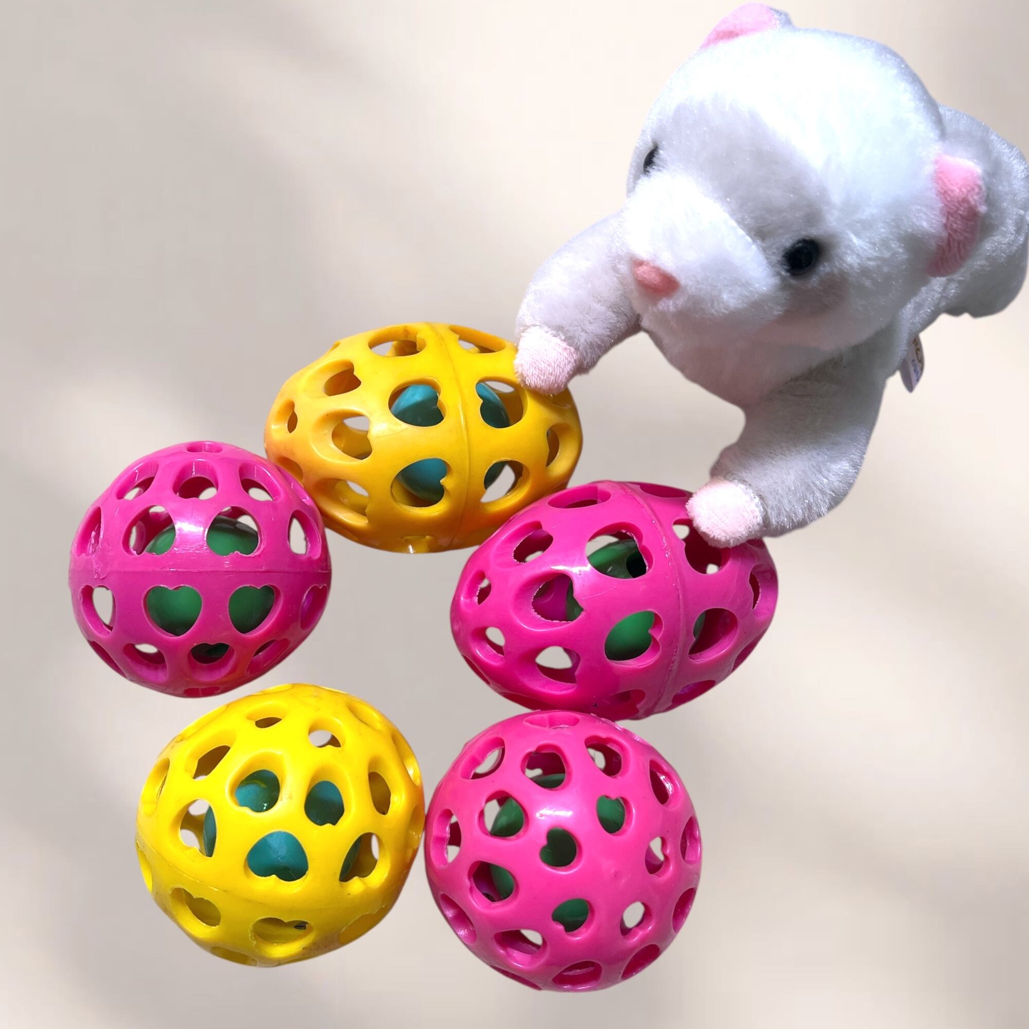 以前大人気の商品 鈴ボール アウトレット品 ・鈴の音がおかしい・小さい・出ない ・イエローのボールにピンク色がついてる ・ちょっとした汚れがある など 形は選べず、色のみ選べます!
