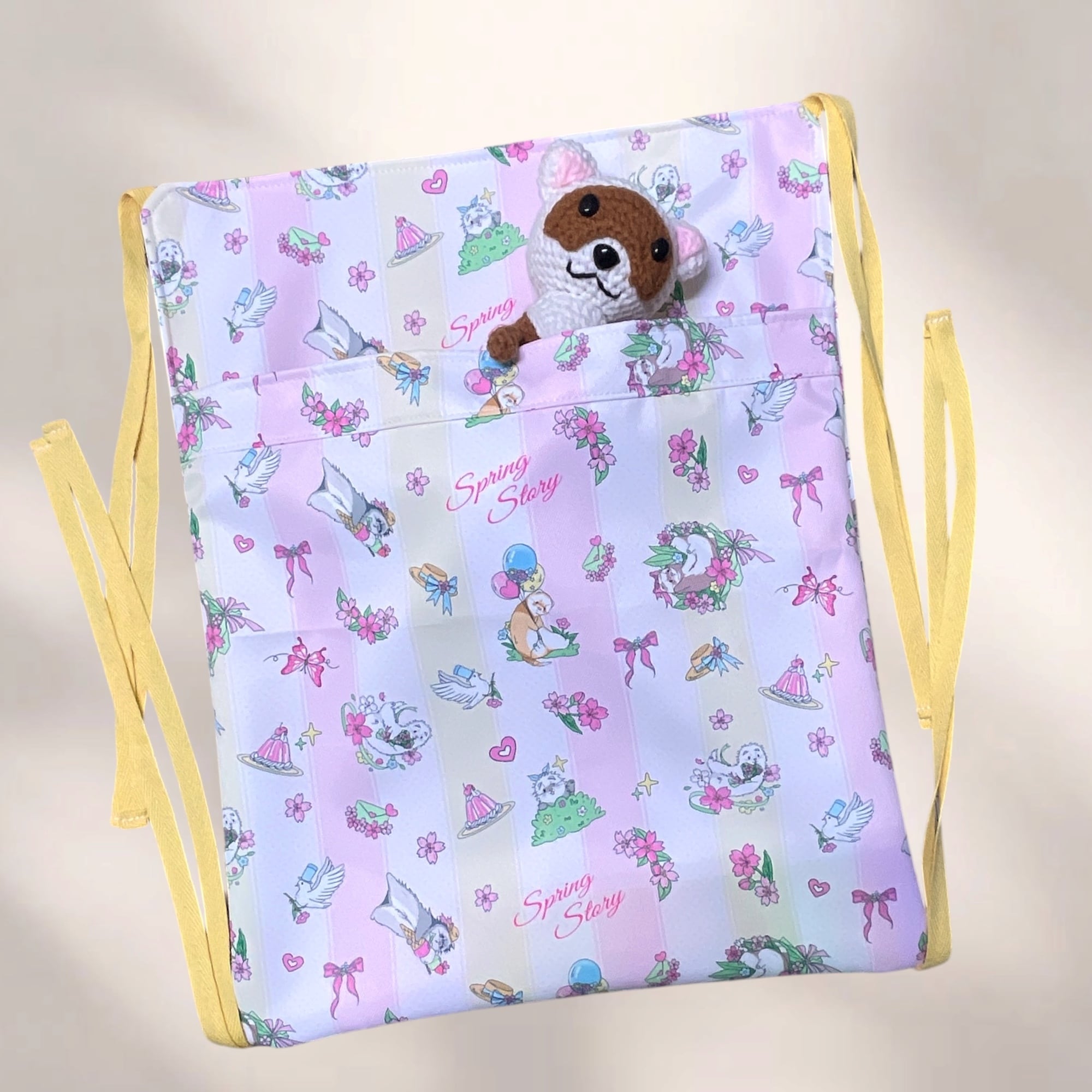 サイズ:38cm×30cm ボンディング生地の潜れるハンモック キャリーに使いやすくするため、四隅は紐仕様です。