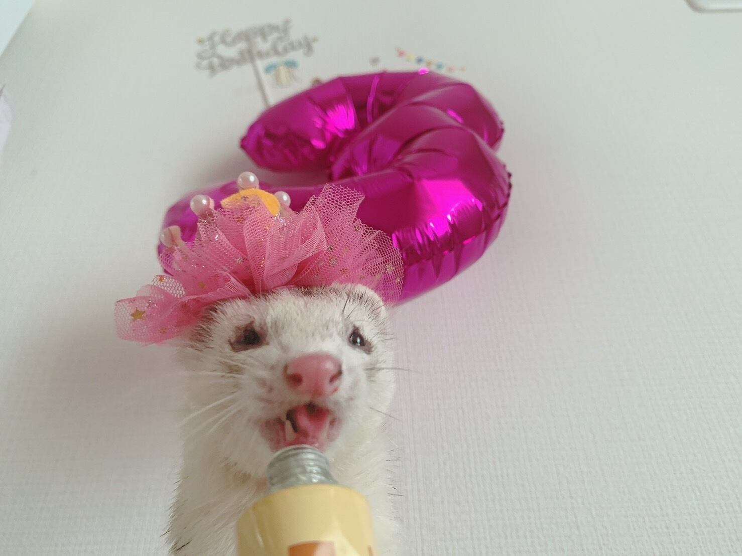 フェレちゃんのお誕生日を祝おうと思ってcocoaがささやかなお誕生日帽子をプレゼントします^ ^