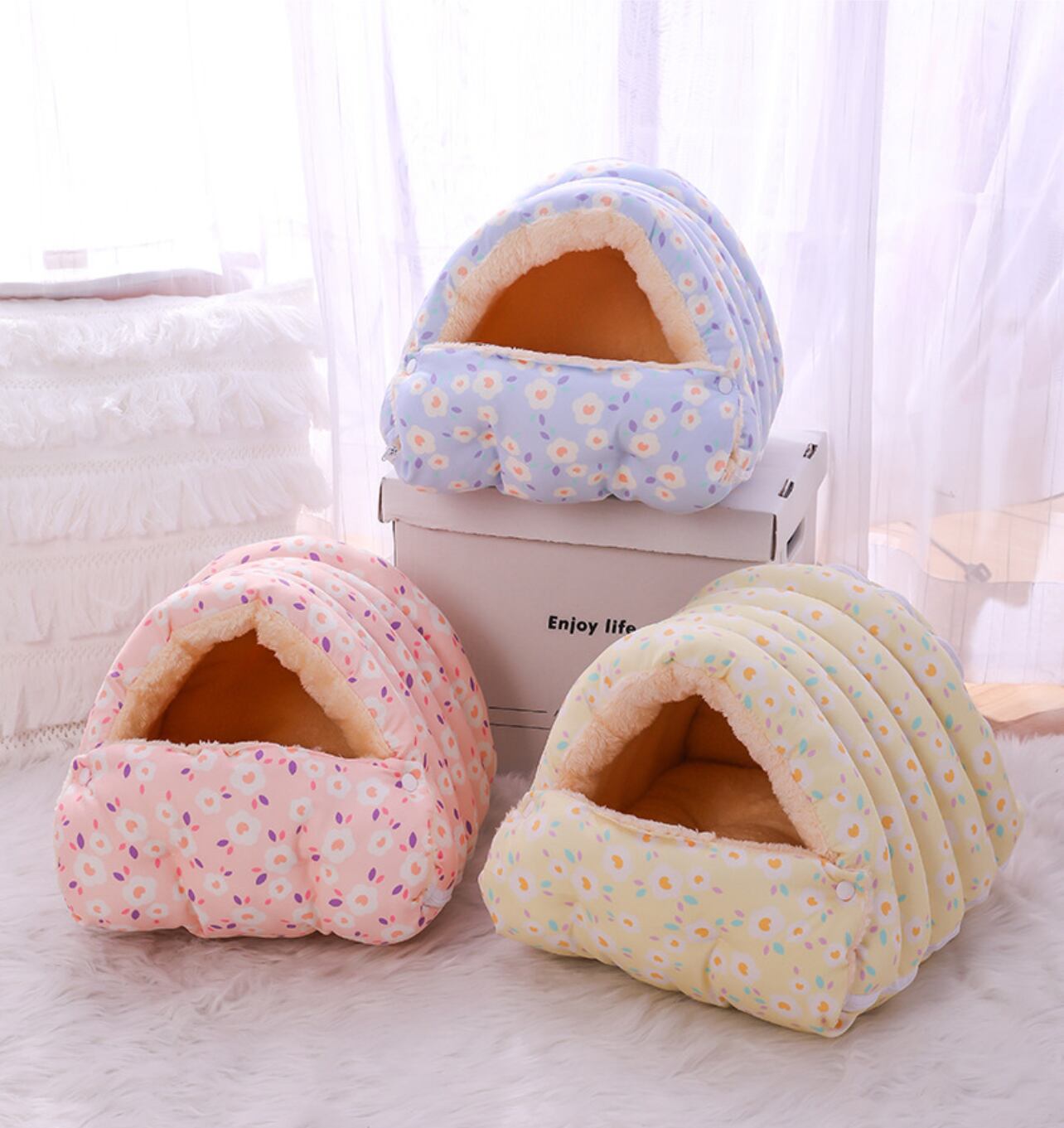 底面と上部はファスナーで繋げています。洗濯時取り外し可能です。
