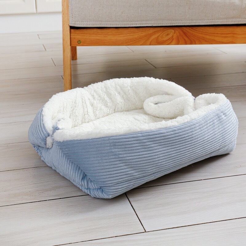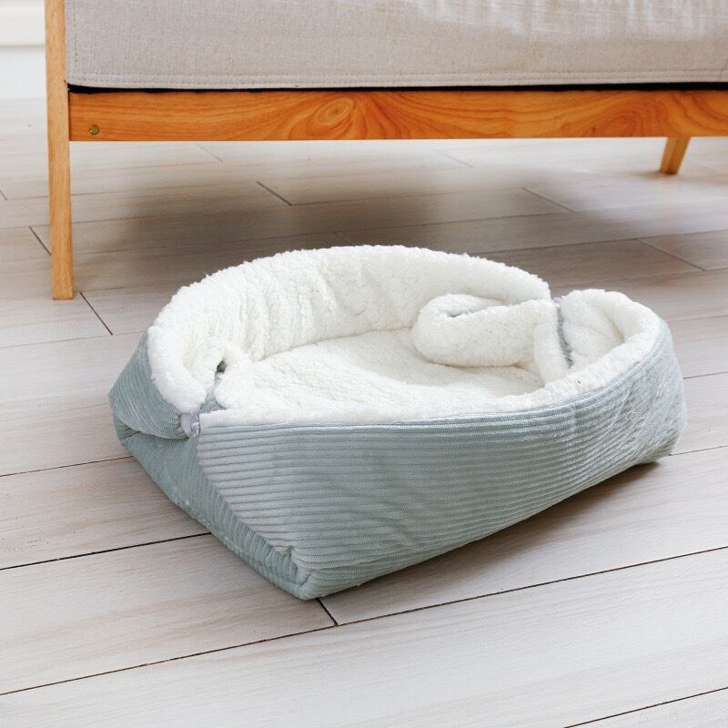 広げたら大きめのマットベッド、ボタンで閉じたら縁ありのベッドになります。